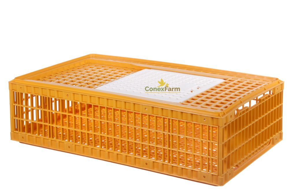 Cușca pentru transportul păsărilor are culoare verde cu ușă roșie, cu capacitate de 18/20 păsări în funcție de climat și greutatea lor. Acestea stau în siguranță, având ventilația necesară, se curăță ușor, se îmbină simplu doar prin simpla apăsare.