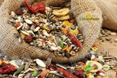 Da-Fincsi hrană pentru papagali uriași, special dezvoltata pentru papagali uriași, este un amestec de semințe extrem de bogat si versatil. Conține o proporție adecvată de semințe uleioase și făinoase, suplimentate cu fructe uscate și granule de vitamine. Este important de reținut că folosim alune decojite strict testate în toate amestecurile noastre.